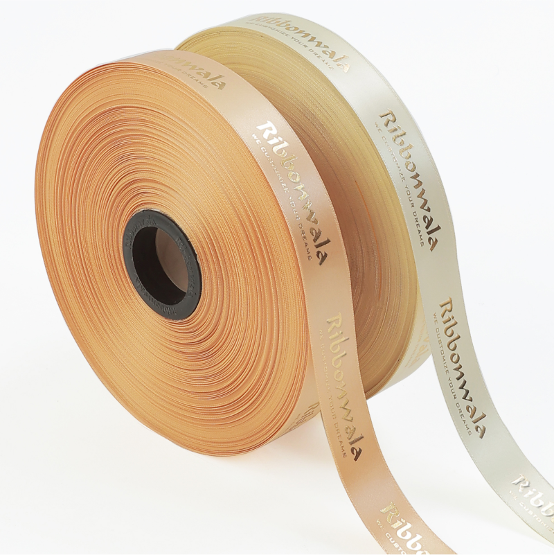 Glossy double-sided satin ribbon with premium foil printing — shine from every angle.